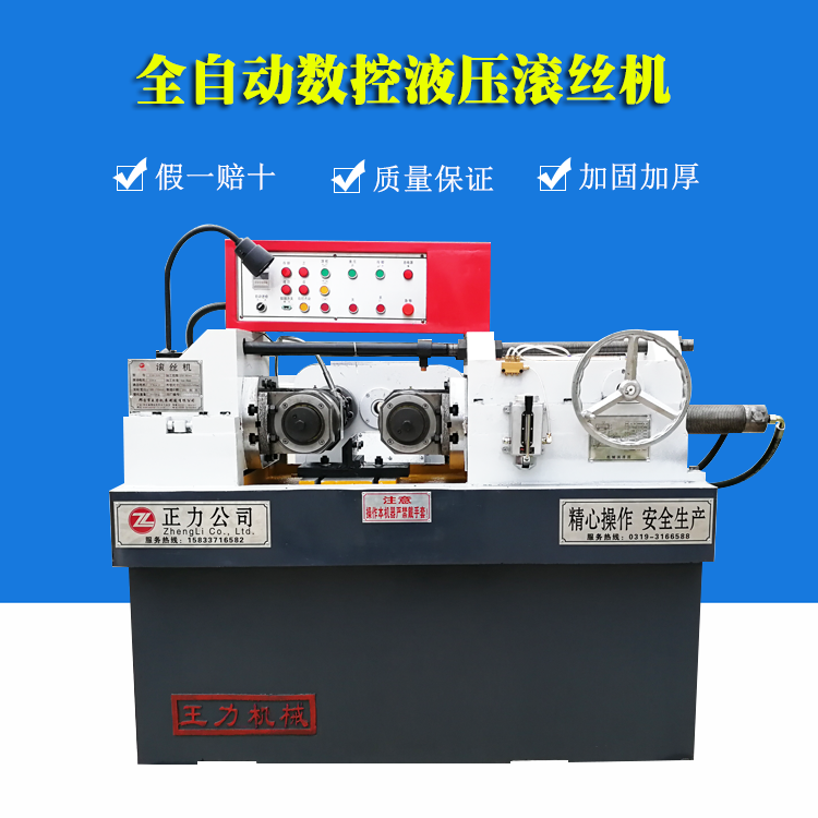 邢臺(tái)正力機(jī)械制造有限公司是國(guó)內(nèi)高端平價(jià)滾絲機(jī)專業(yè)化制造企業(yè)。 本公司是集研制、開發(fā) 、生產(chǎn)與銷售為一體的大型機(jī)械廠家,現(xiàn)主要產(chǎn)品有:滾絲機(jī),螺紋機(jī)床,縮經(jīng)機(jī),拔料機(jī),冷軋壓圓機(jī),雙組拉絲機(jī)等各種機(jī)械。地處燕趙大地南部邢臺(tái)市,是省級(jí)重合同、守信用、產(chǎn)品質(zhì)量穩(wěn)定型企業(yè),河北省消費(fèi)者協(xié)會(huì)信的過(guò)產(chǎn)品,產(chǎn)品暢銷全國(guó)各地,深受用戶的好評(píng)。